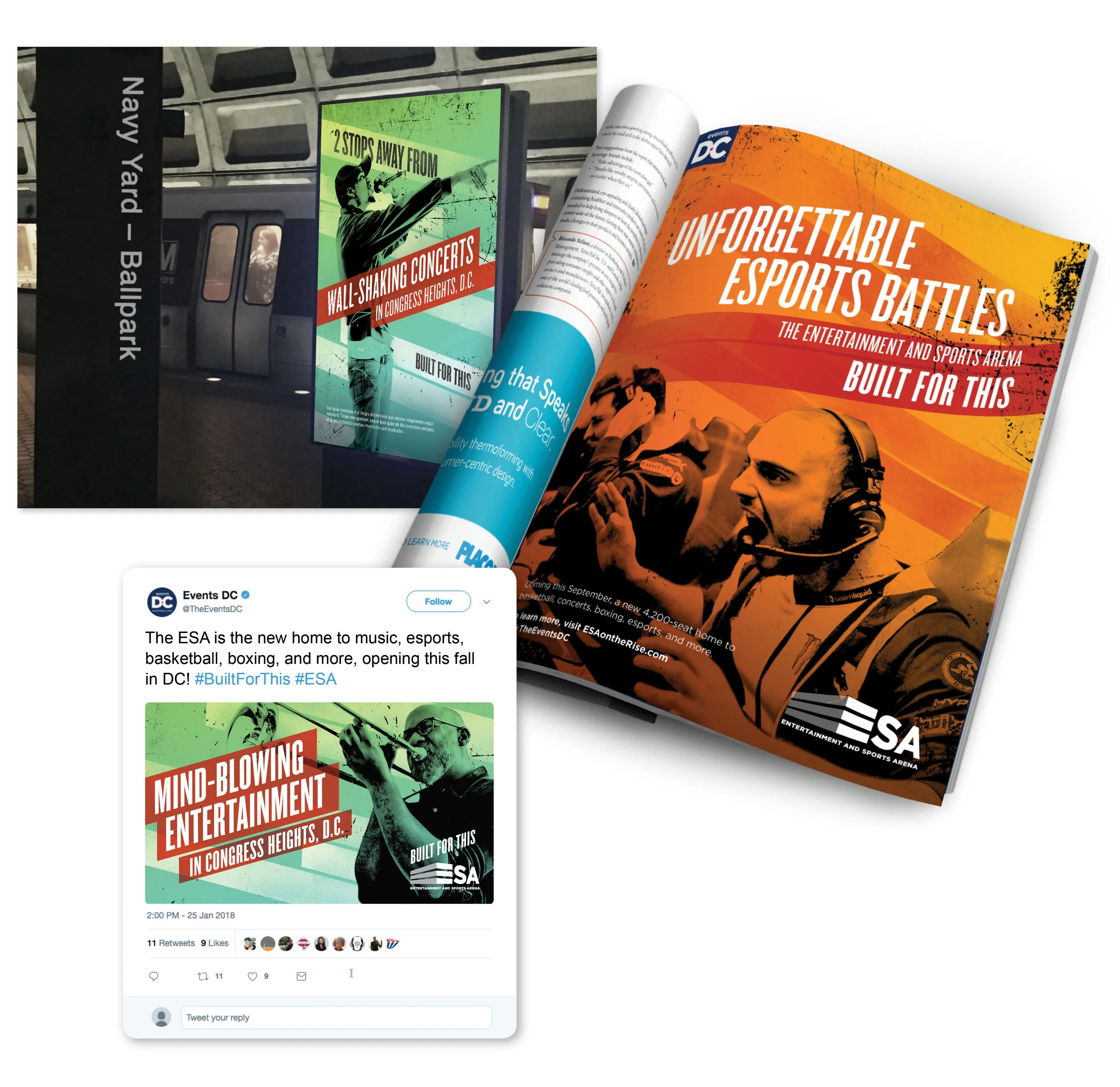 Events DC is the official convention, entertainment and sports authority for the District of Columbia. They asked us to develop and pitch an awareness campaign to them, to help promote their newest venue, The Entertainment and Sports Arena. I led design for the three proposed campaign directions shown below, and also developed the arena logo featured on the right.